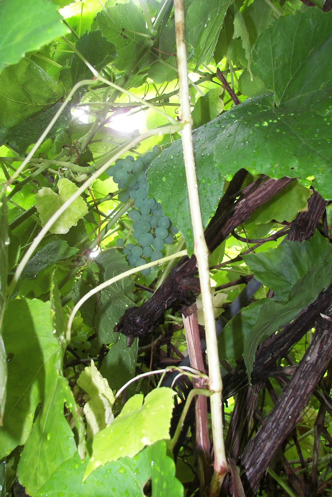 Here are some garden shots: Grapes, oh my lord, we had GRAPES this year. Hundreds of pounds of grapes. Ate lots, and took about 150 lbs. to a friend who made wine for us. I'm not a drinker (at all), but the Man finds it palatable, served up in style out of a quart sealer. :-)